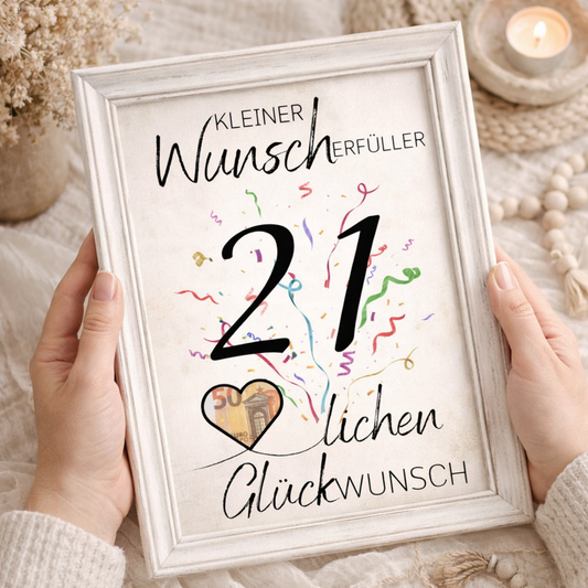 Geldgeschenk 21. Geburtstag Wunscherfüller | Digitaler Download | Last Minute Geschenkidee zum Ausdrucken
