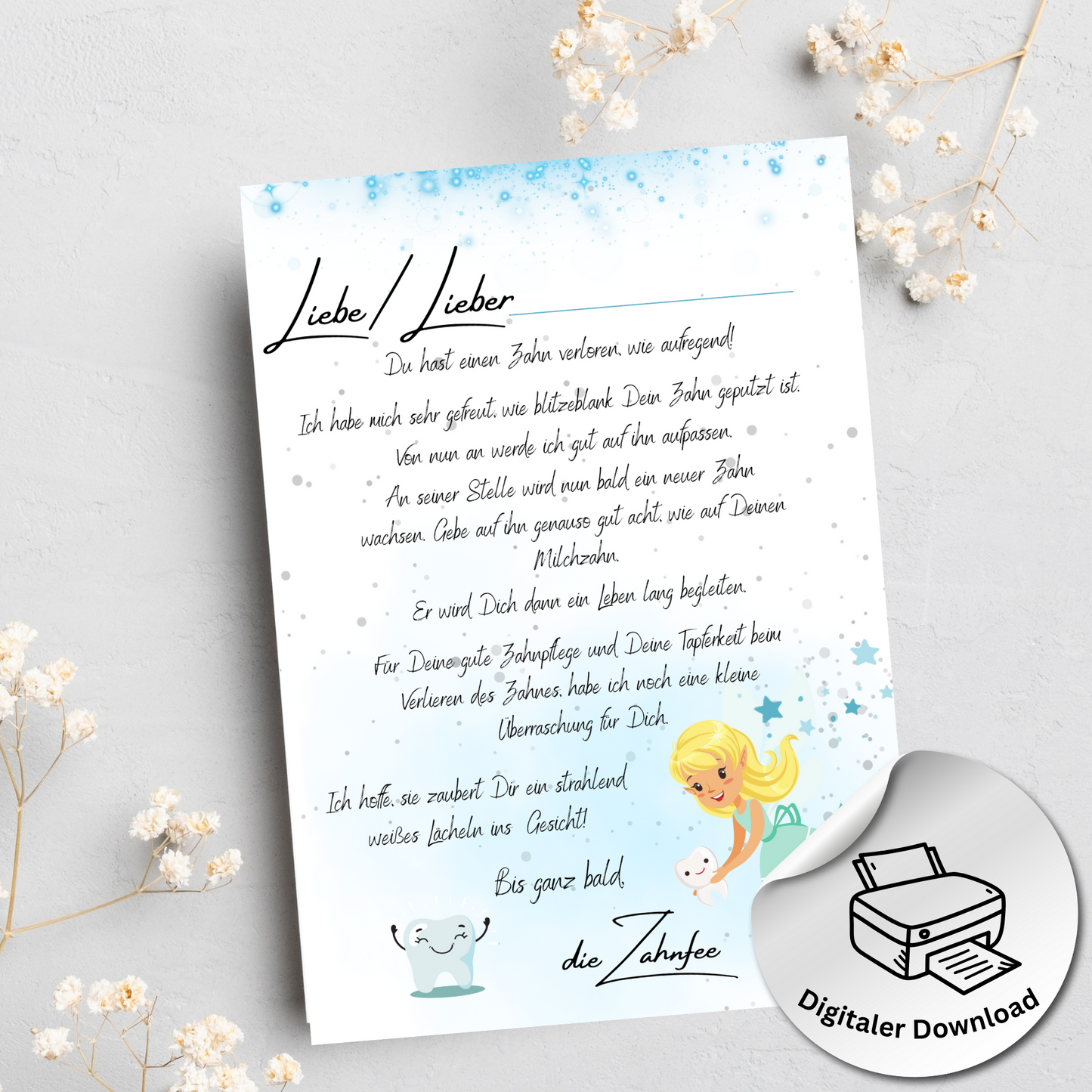 Brief von der Zahnfee zum selbst ausdrucken | personalisierbar | Briefvorlage zum selbst ausfüllen - Digitaler Sofort Download