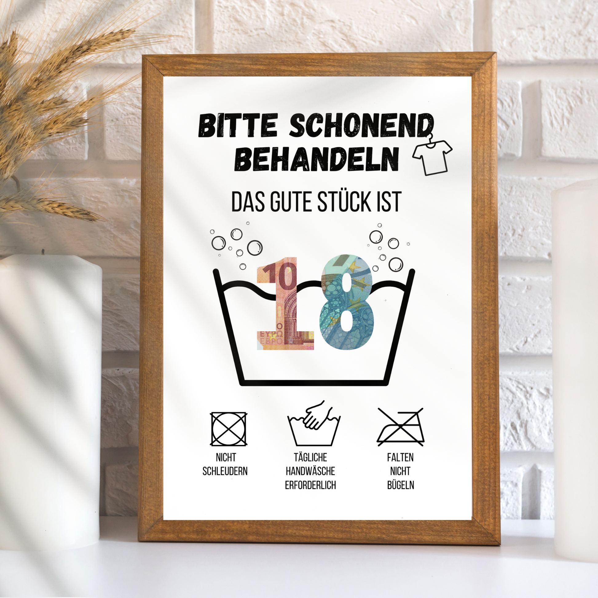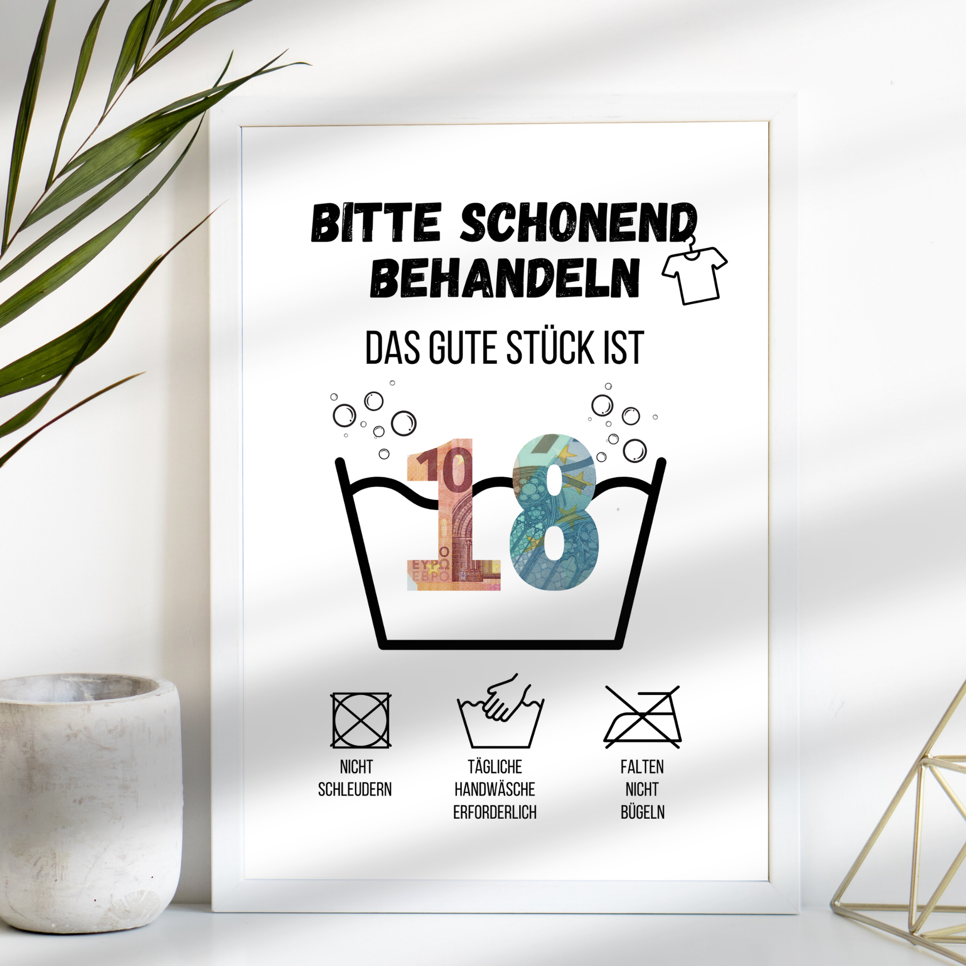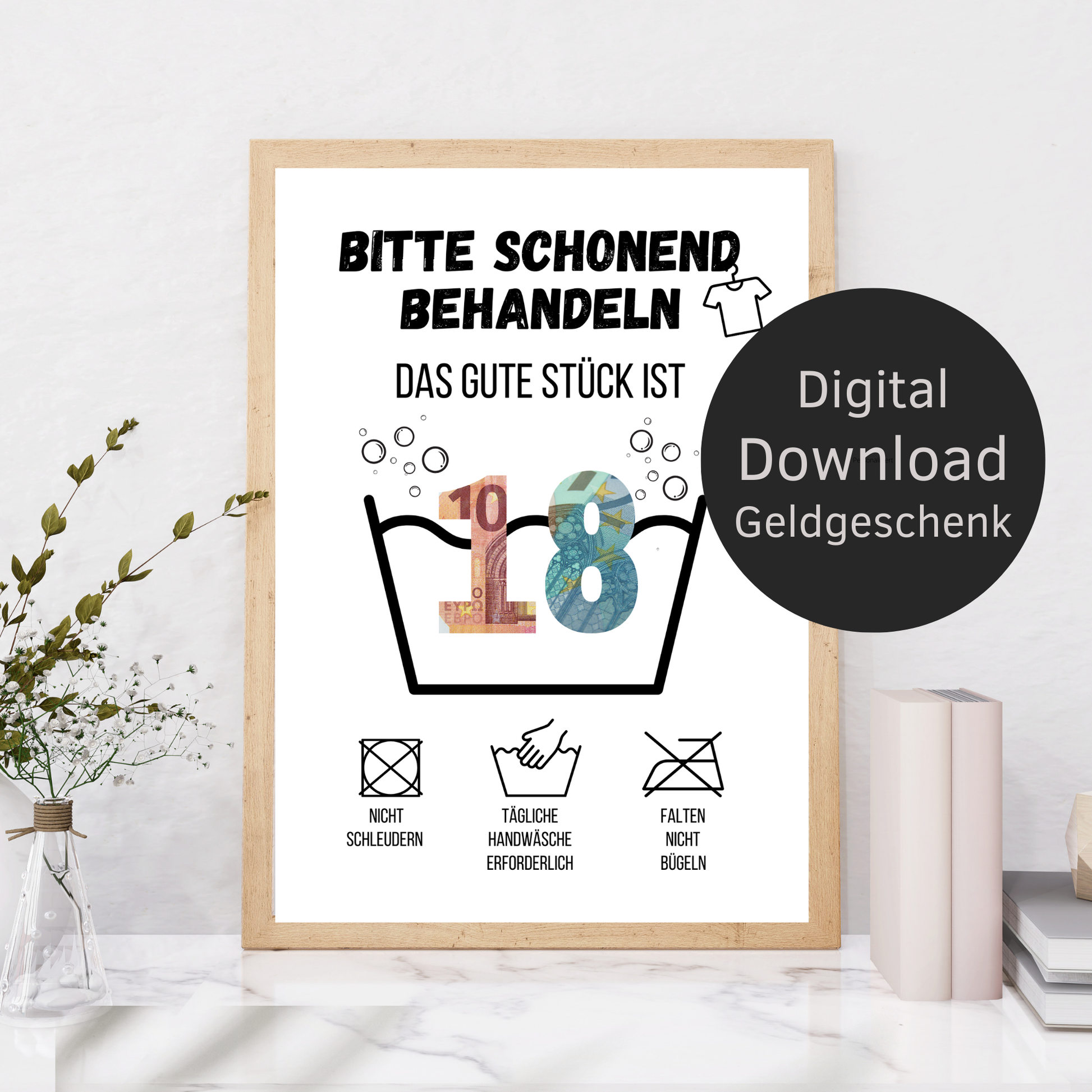 Geldgeschenk 18. Geburtstag Waschanleitung Volljährigkeit | Digitaler Download DIY Geschenkidee