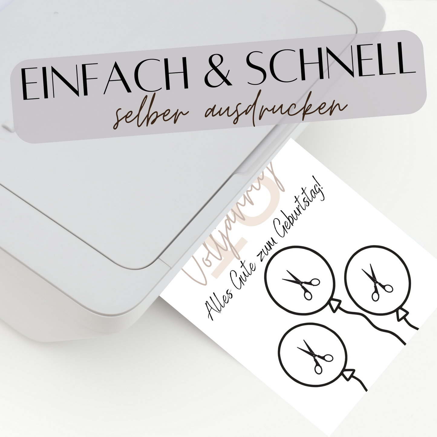 Die Gestaltung überzeugt mit stilvollen Farben, typografischem Design und der cleveren Idee, Geldscheine als Ballons hinter das Poster zu platzieren. Einfach zuhause ausdrucken, ausschneiden, mit Banknoten hinterlegen und in einen handelsüblichen Bilderrahmen einsetzen – fertig ist ein unvergessliches Präsent!