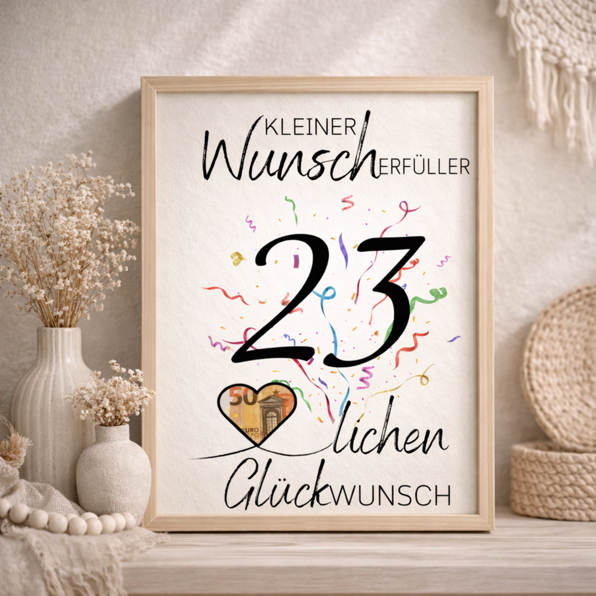 Geldgeschenk 23. Geburtstag Wunscherfüller | Digitaler Download | Last Minute Geschenkidee zum Ausdrucken
