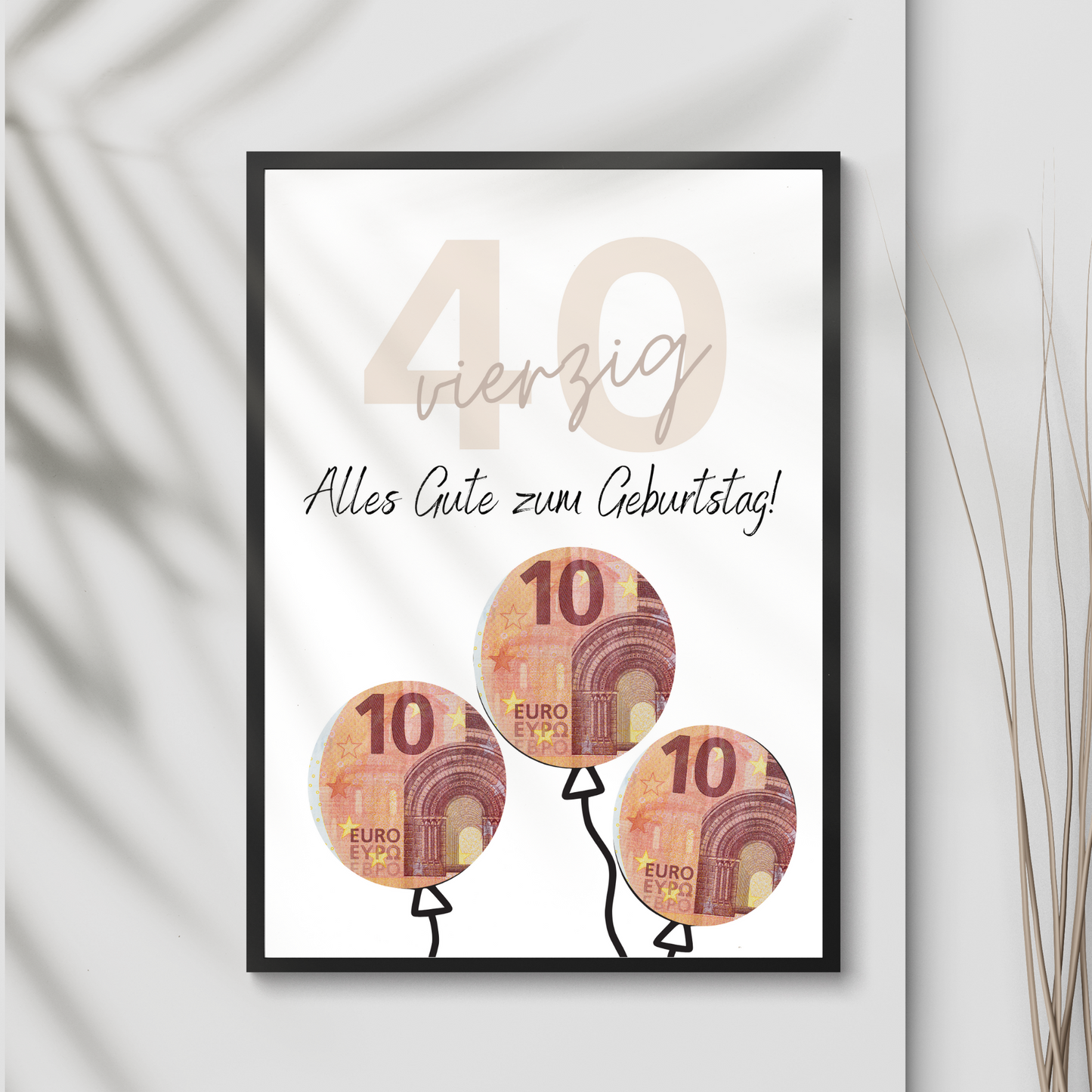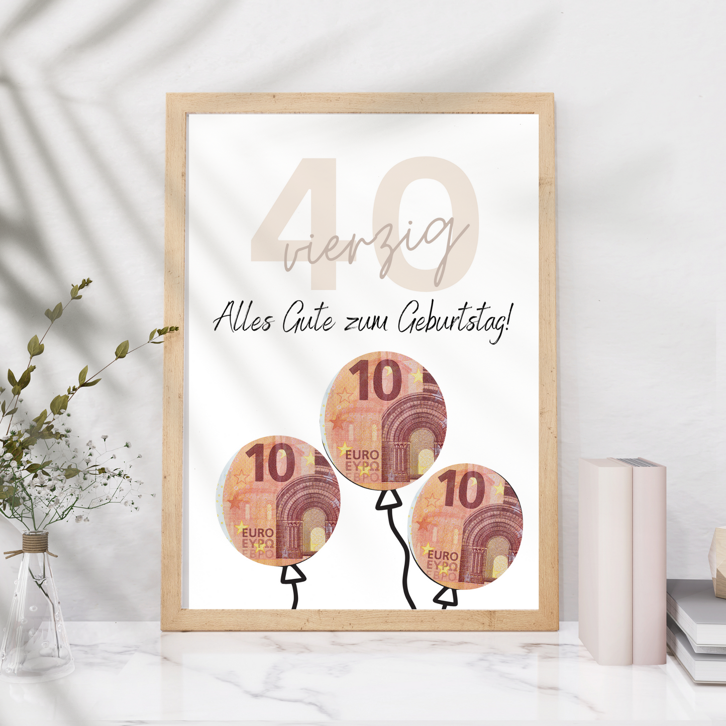 Geldgeschenk 40. Geburtstag | Geschenk zum selbst ausdrucken | Digitaler Download | Kreative Geburtstagsgeschenkidee