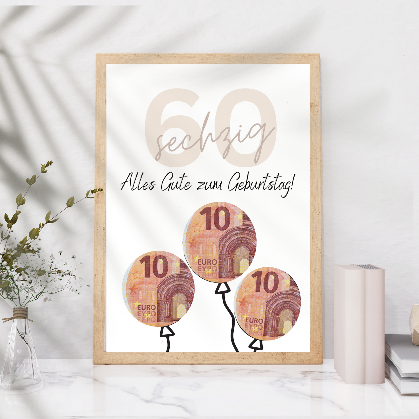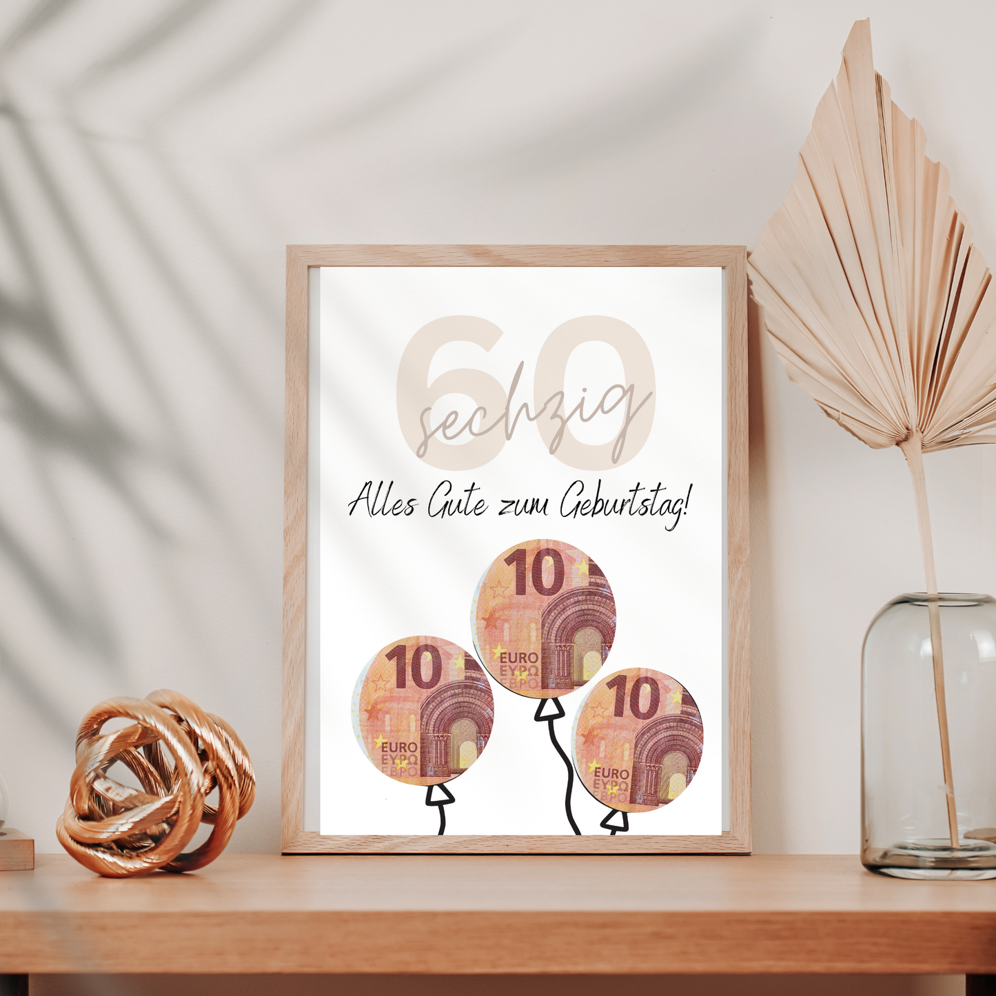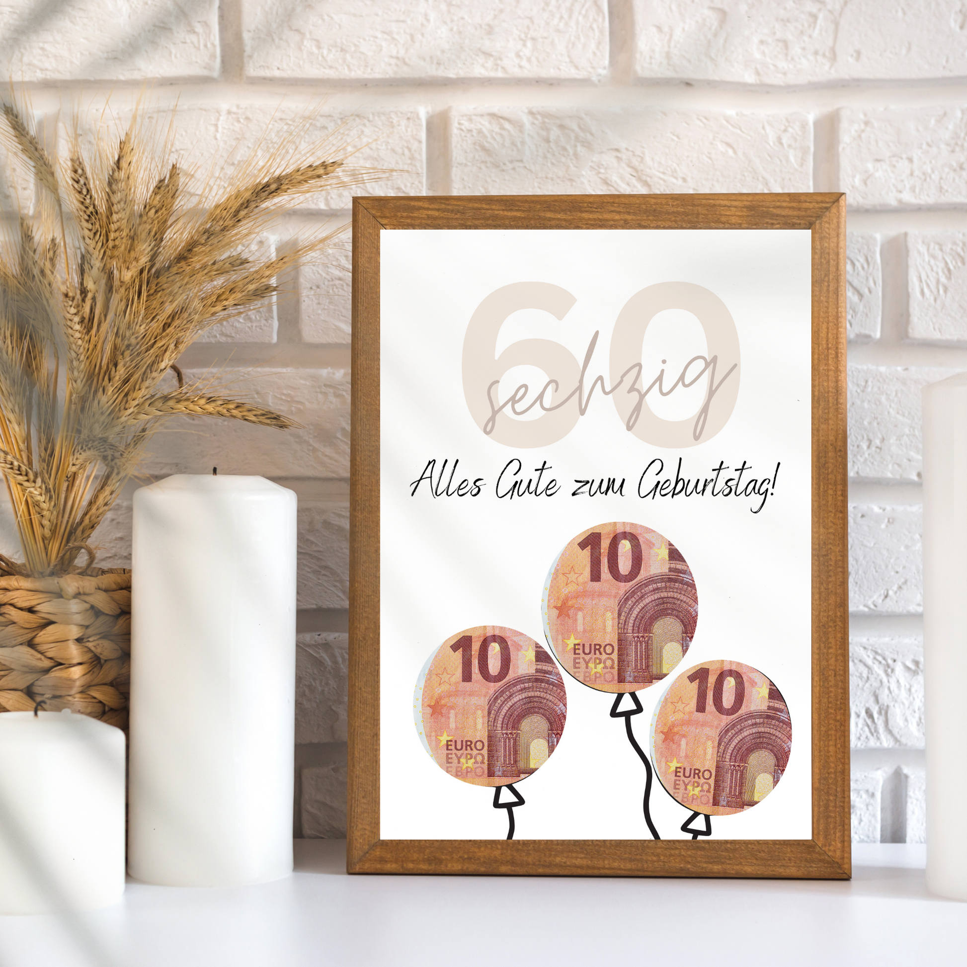 Geldgeschenk 60. Geburtstag | Geschenkidee zum Selbstausdrucken | Digitaler Download Vorlage