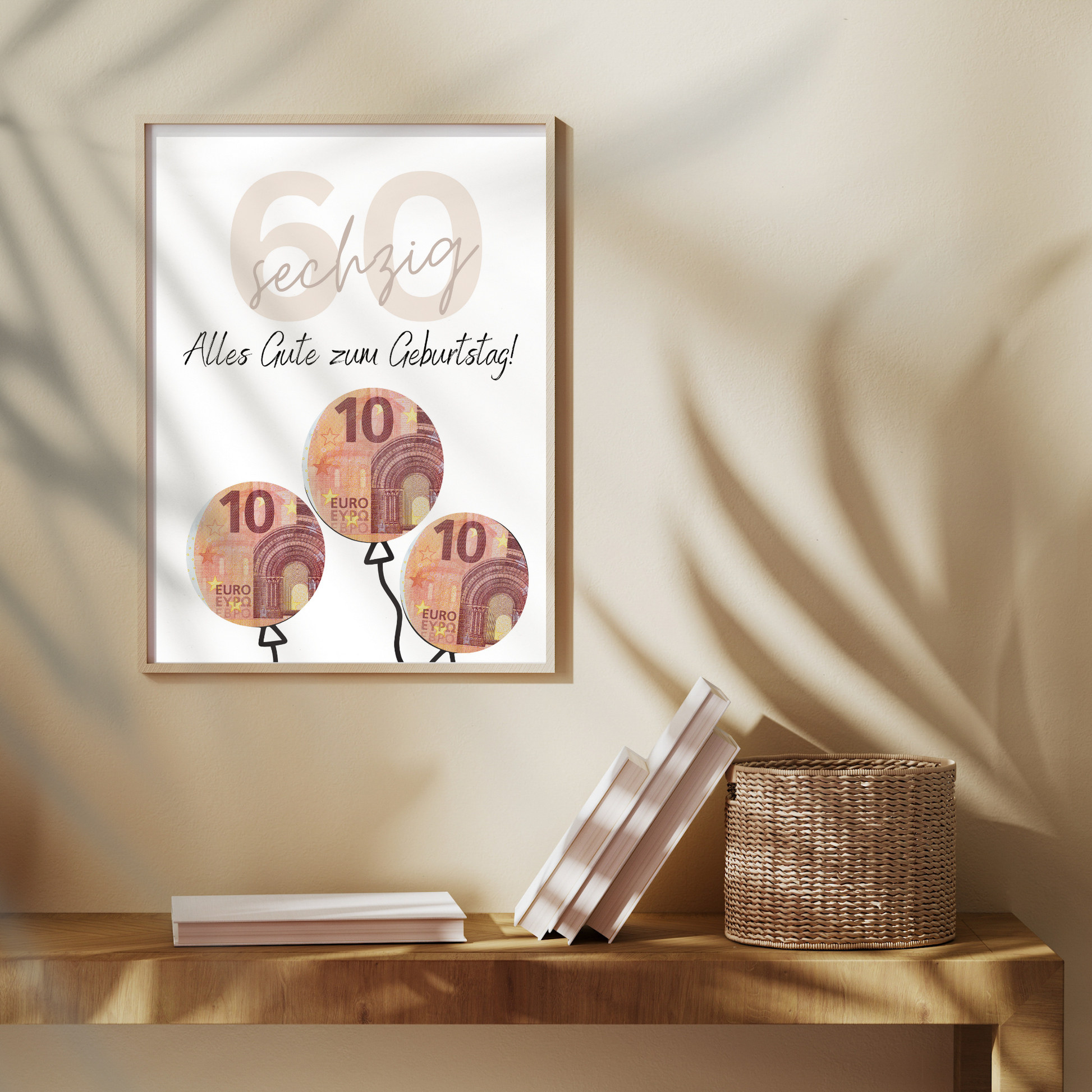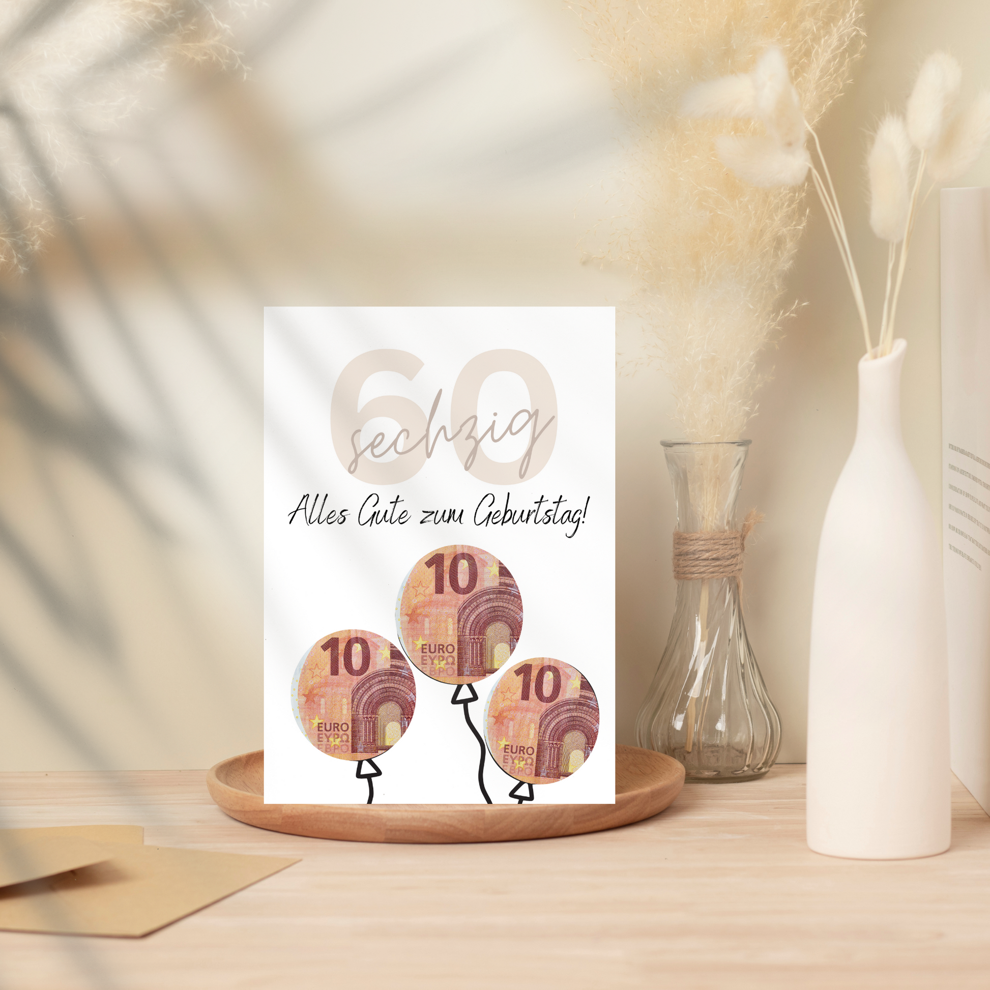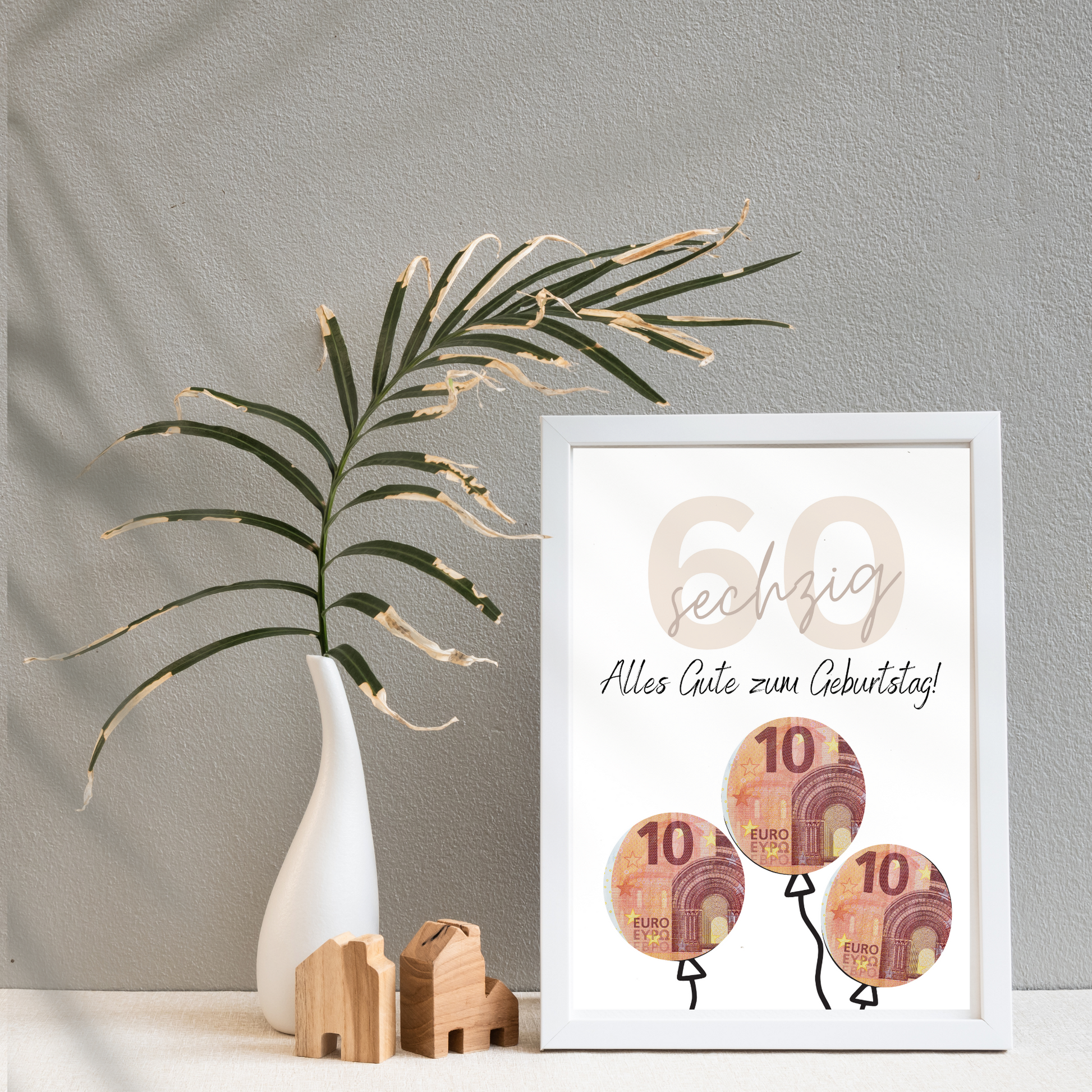 Geldgeschenk 60. Geburtstag | Geschenkidee zum Selbstausdrucken | Digitaler Download Vorlage