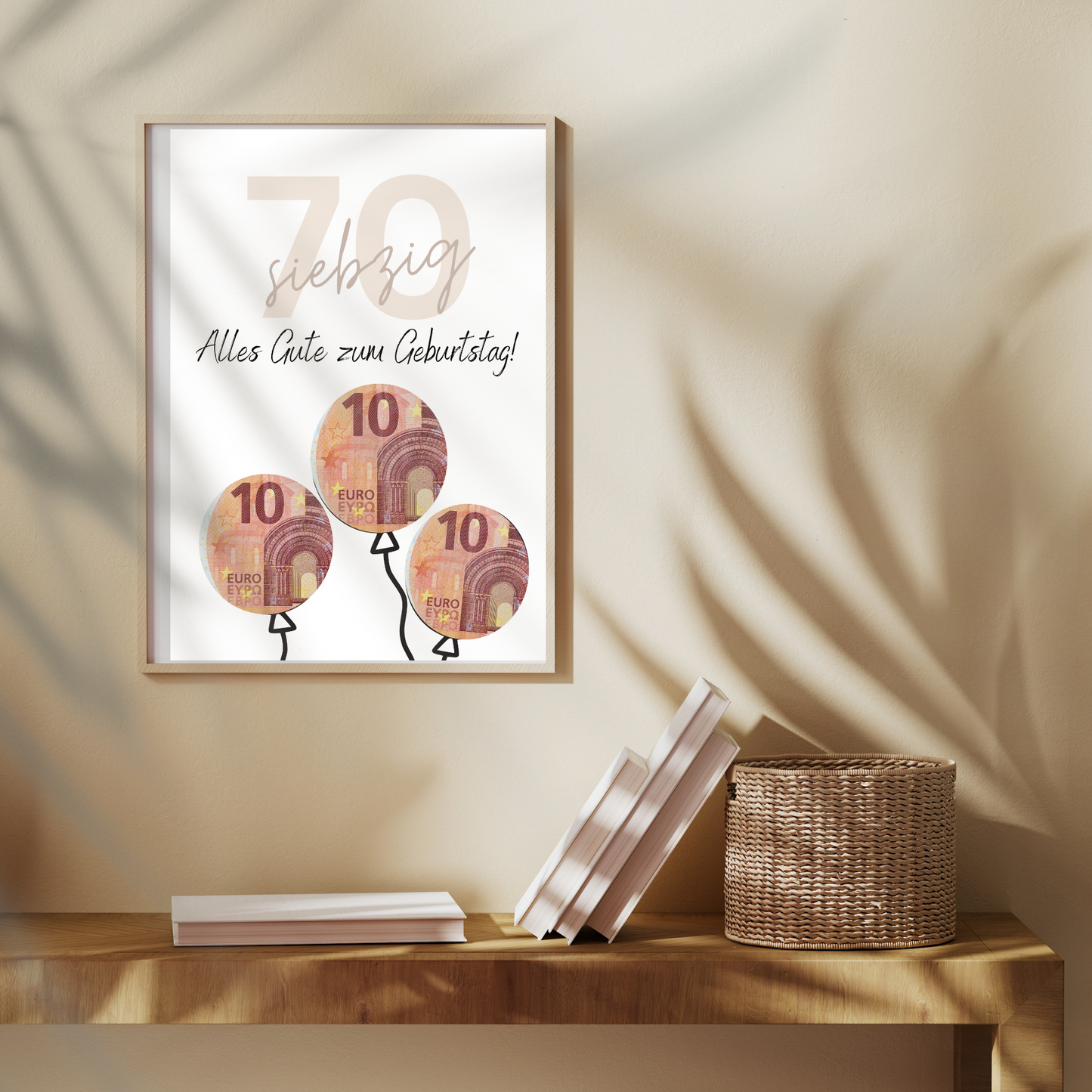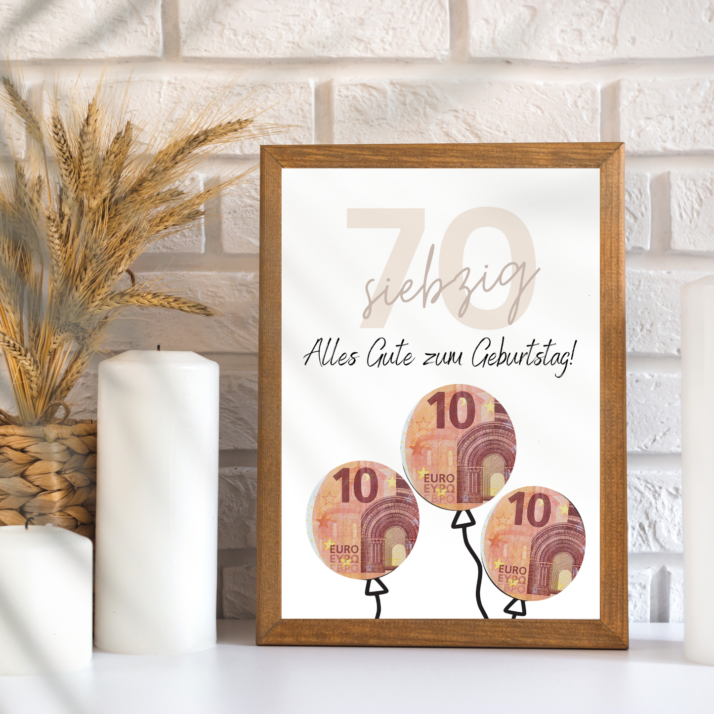 Geldgeschenk 70. Geburtstag | Digitaler Download | Vorlage zum Ausdrucken | Originelle Geschenkidee