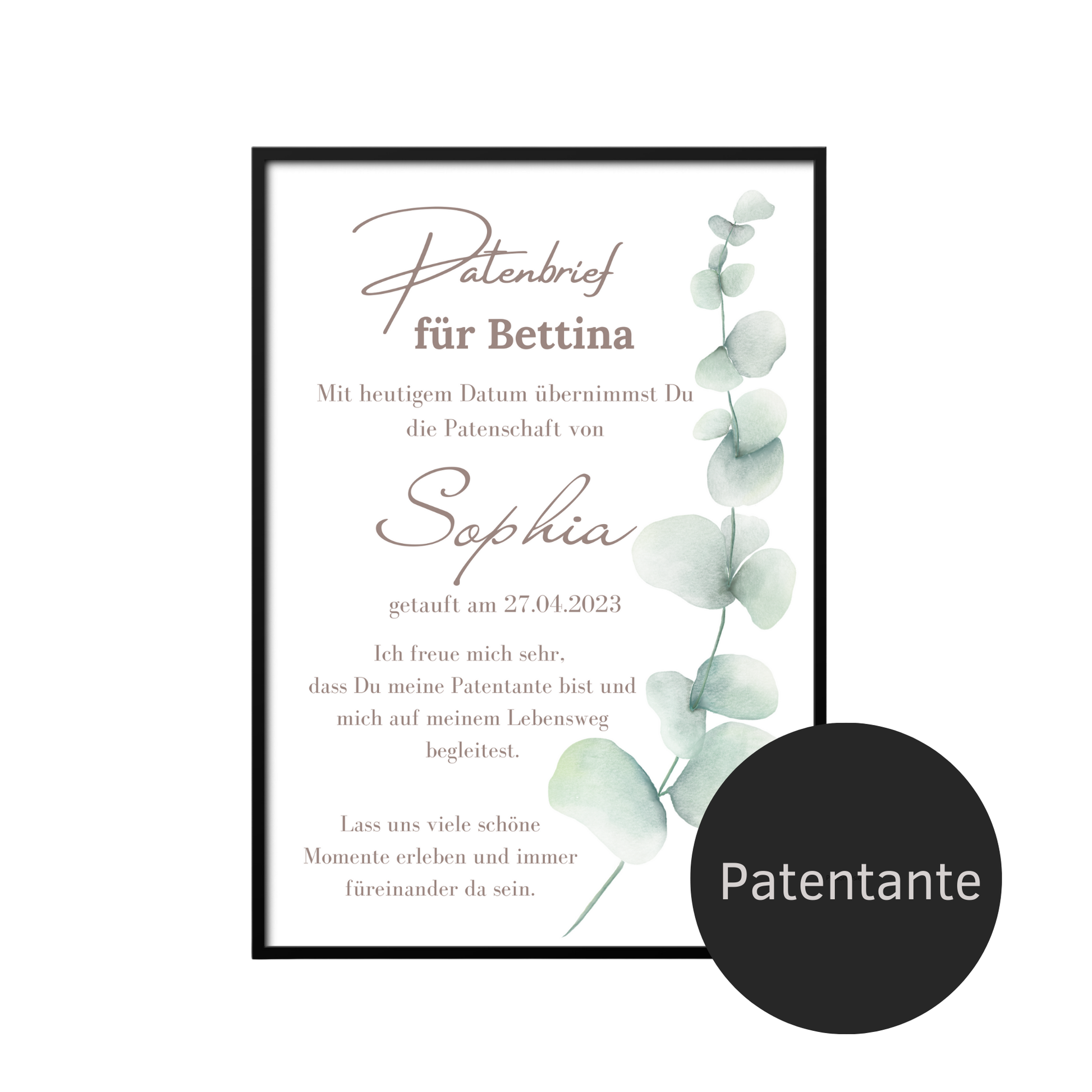 Patenbrief für Patentante, Patenonkel oder Pateneltern – personalisiert | Geschenk zur Taufe | Digitaler Download | A4